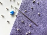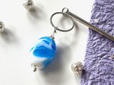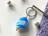 水色と白のマーブル模様のとんぼ玉でかんざしを作りました。