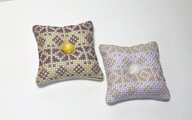クロスステッチ用布地に刺繍を施したピンクッションです。