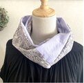 さらりとした、絹のような肌触りのリバティプリントと合わせることで、軽く着け心地のよいスヌードに仕上がりました。お肌の敏感な方にもおすすめです。