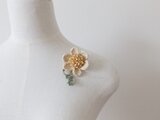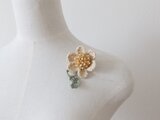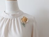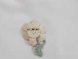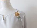 シルク100%の糸を手編み機で編んで作った花のブローチです。