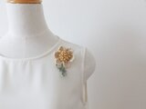 中心にはパール調ビーズやオレンジ系のビーズをびっしりと刺繍し、夏のひまわりのイメージです。