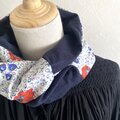 さらりとした、絹のような肌触りのリバティプリントと合わせることで、軽く着け心地のよいスヌードに仕上がりました。お肌の敏感な方にもおすすめです。