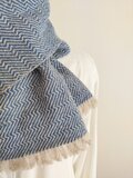 とても深みがあり複雑な青と落ち着いたクリーム色が素敵で、見入ってしまいます。質感も柔らかく、優しい肌触りで着用する時がとても楽しみです。大切にします。ありがとうございました。