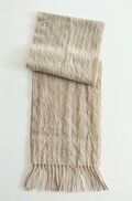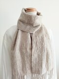 ハック織りという一部の糸を数段飛ばしながら織る技法で、ポコポコとした立体感のある表情のマフラーを仕立てました。