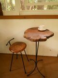 テーブル・イス共、自然木けやき1枚木を使用しており自然の形状を活かしたテーブルとイスであります。