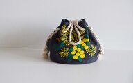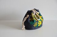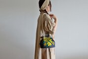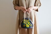 ミモザとタンポポ ハンドペイント フレンチリネン2Wayマリンバッグ ブラック お着物や浴衣にも◎