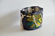 オリジナルデザインのSomei et Miaiのマリンバッグミモザとタンポポ ハンドペイント フレンチリネンマリンバッグにシックな雰囲気のブラックが新色としてラインナップしました。
