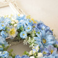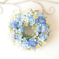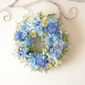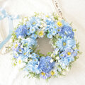 青のニュアンスを丁寧に重ねたフラワーリースです。