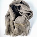 ふんわりが心地よい刺し子のリネンストール 小幅/焦茶色
