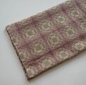 3色のローズピンクと淡いモスグリーンを組み合わせて、円をモチーフにした幾何学模様に織りました。