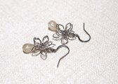 大きなお花と雫のデザインピアス。