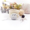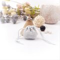 あるようでなかった超ミニサイズの巾着袋。光沢の美しいレース糸で編みました。