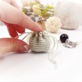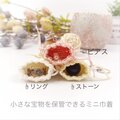 あるようでなかった超ミニサイズの巾着袋。光沢の美しいレース糸で編みました。