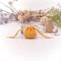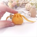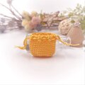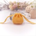 あるようでなかった超ミニサイズの巾着袋。光沢の美しいレース糸で編みました。