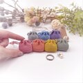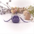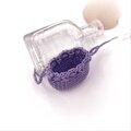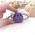 あるようでなかった超ミニサイズの巾着袋。光沢の美しいレース糸で編みました。
