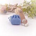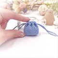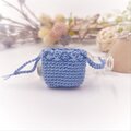 あるようでなかった超ミニサイズの巾着袋。光沢の美しいレース糸で編みました。