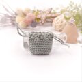 あるようでなかった超ミニサイズの巾着袋。光沢の美しいレース糸で編みました。