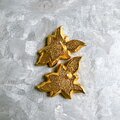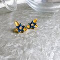 ゴールドトーンをベースにブルーのエナメルペイントされたフローラルピアス。