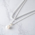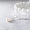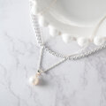 きれいな形の淡水パールとシルバー925製の華奢チェーン&ボールチェーンを合わせて、2連ネックレスを作りました。