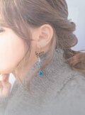 S0【1点物】シルバーカラーでアパタイトとブルーカルセドニー&蝶のピアス(パーツ変更可能)