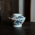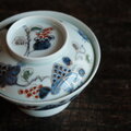 リーフと赤い実◆蝶々もいる。伊万里 錦手金彩蓋付碗 antiques/骨董 古民家 古道具 器 江戸後期 個体A