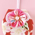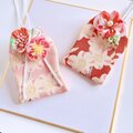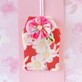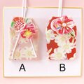 素敵なお守り袋が2つ届きました。 絞りの生地の色合いと大輪の花がとても華やかでキュートです。 白梅のものは、奥ゆかしさと気品を感じました。 どちらも大変気に入りました。大切に使わせていただきます♪