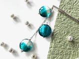 エメラルドグリーンのおはじき型とんぼ玉を3連にしてかんざしを制作しました。