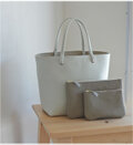 作品が到着いたしました。 優しいラテグレージュ色と細いレザーハンドルが、とても上品でフェミニンな印象の素敵なバッグですね。 季節を問わず活躍してくれる事間違いありません。ありがとうございました。