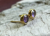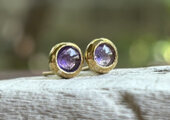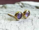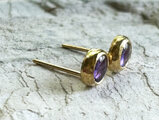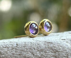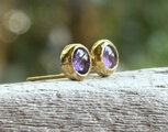 K24, 純金にアメジスト(紫水晶)を留めたスタッドピアスです。