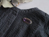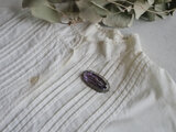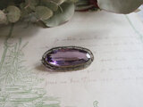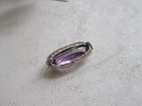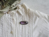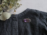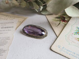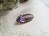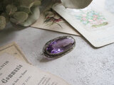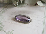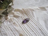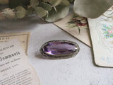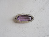 大きなアメジスト色のガラスがひっそりと輝くブローチです。