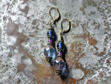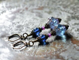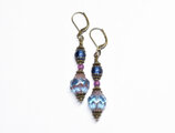 ゼニスブルーチェコビーズとロイヤルブルーヴィンテージビーズ、すみれ色フランスヴィンテージを繋いだピアスです。