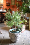 オプションでアンティーク風のテラコッタコンテナに植え替えてのお届けも可能です。(¥6,500)