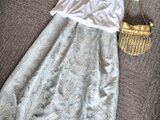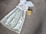 ★★ 爽やかなペールグリーンの地色にミシン刺繍をあしらったギャザースカートです ★★