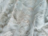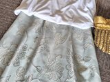 インテリア用の生地を使ったスカートを時折ご紹介させて頂いていますが、こちらは光沢のある薄いみどりの地色にミシン刺繍を大胆にあしらった生地を入手しましたので、アップさせて頂きます。