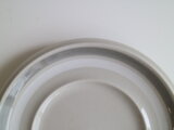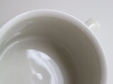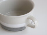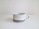 カップにはホワイト と 少しグリーンがかったグレーのラインがハンドペイントで描かれており、シンプルなデザインですが温もりも感じる作品です。