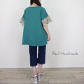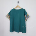 [予約販売] ボイルフラワー袖とWガーゼ・スモーキーブルー×シーグリーンの袖フリルプルオーバー