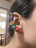 小さなミラーを刺繍で包みこみ、色のキレイなガラスビーズを組み合わせミラー刺繍とガラスビーズの小さなイヤーカフにしました。