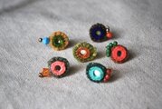 小さなミラーを刺繍で包みこみ、色のキレイなガラスビーズを組み合わせミラー刺繍とガラスビーズの小さなイヤーカフにしました。