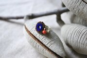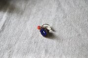 ミラー刺繍とガラスビーズの小さなイヤーカフ 青/赤ビーズ