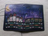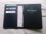 パスポートサイズトラベラーズノートカバー 牛革、刻印&拭き染め カードポケット付き