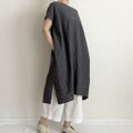 シンプルながら緩やかなコクーンシルエットと浅いVネックで夏に嬉しいチュニックが出来ました。