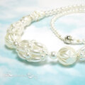 ホワイトパールを編んだモチーフに、大粒のデザインパール、ラメのような輝きのシャイニーパール。