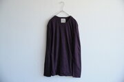 着心地も楽で、リラックスしたカジュアルスタイルに活躍するリネンニットの長袖プルオーバーです。素材はリネン100%。リネンといっても、ニット組織ですので、身体をふんわり包み込むような軽さと柔らかさが新しい感覚です。シャリシャリのざっくり編みのニットではなく、細番手の糸を編み上げた柔らかさが気持ちよいです。二重仕立てですので、透けにくく、ふんわりと包み込まれるような着心地。
