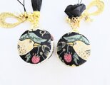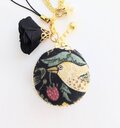 ウイリアムモリスのストロベリー シーフStrawberry Thief(いちご泥棒)柄ブラック地、綿シーチング生地のマカロンポーチです。