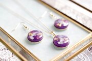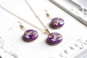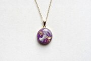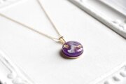 紫色のレジンに金箔をあしらい、ホワイトを燻らせた幽玄な雰囲気のペンダント。
