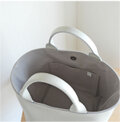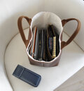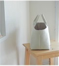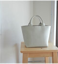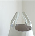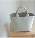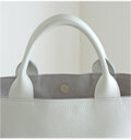作品が到着いたしました。 優しいラテグレージュ色と細いレザーハンドルが、とても上品でフェミニンな印象の素敵なバッグですね。 季節を問わず活躍してくれる事間違いありません。ありがとうございました。