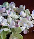 ふんわり、丸くくるんとカールした花びらが愛らしい、紫陽花のバナナクリップ。