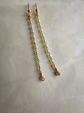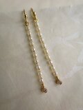 メガネ留めよりも地金が目立たず、パールだけでつながっているように見えるデザインです。一番下にはダイヤを下げました。
