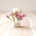 釉薬の色が冴える白い陶土を丸めて制作した小さな花立てです。