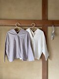 上質でやわらかい100%コットンの生地を贅沢にダブル(2重)で使った羽織りカーディガンです。フロントにはシェル(貝)ボタン。